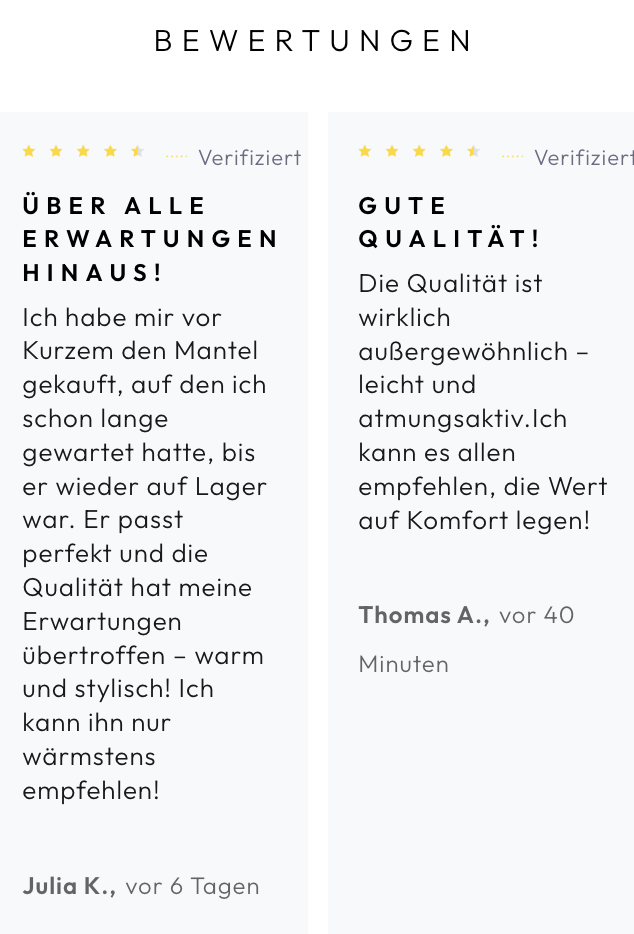 Genau das, was ich brauchte! Der Schnitt ist perfekt und der Stoff ist sehr weich. Ich bin mit der Qualität sehr zufrieden – ich werde definitiv wieder bestellen.