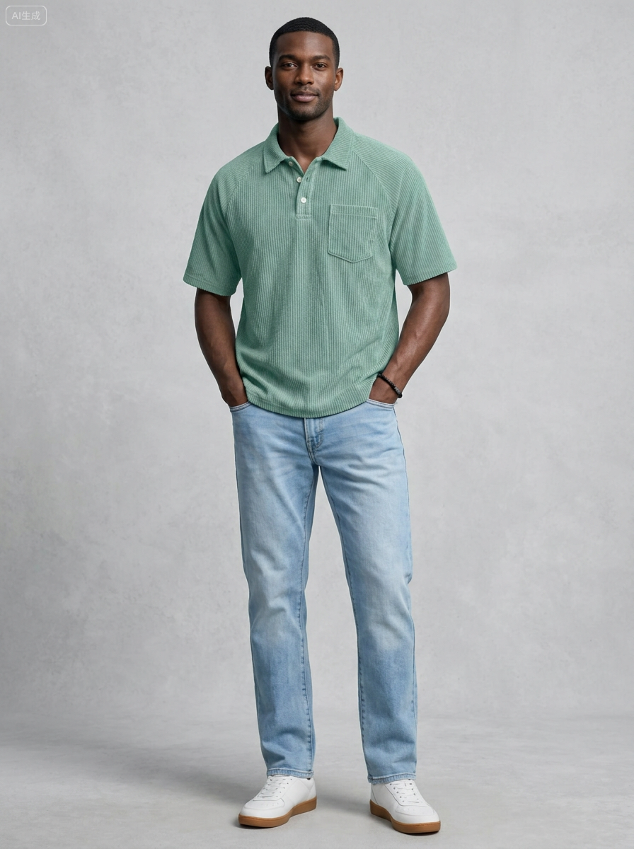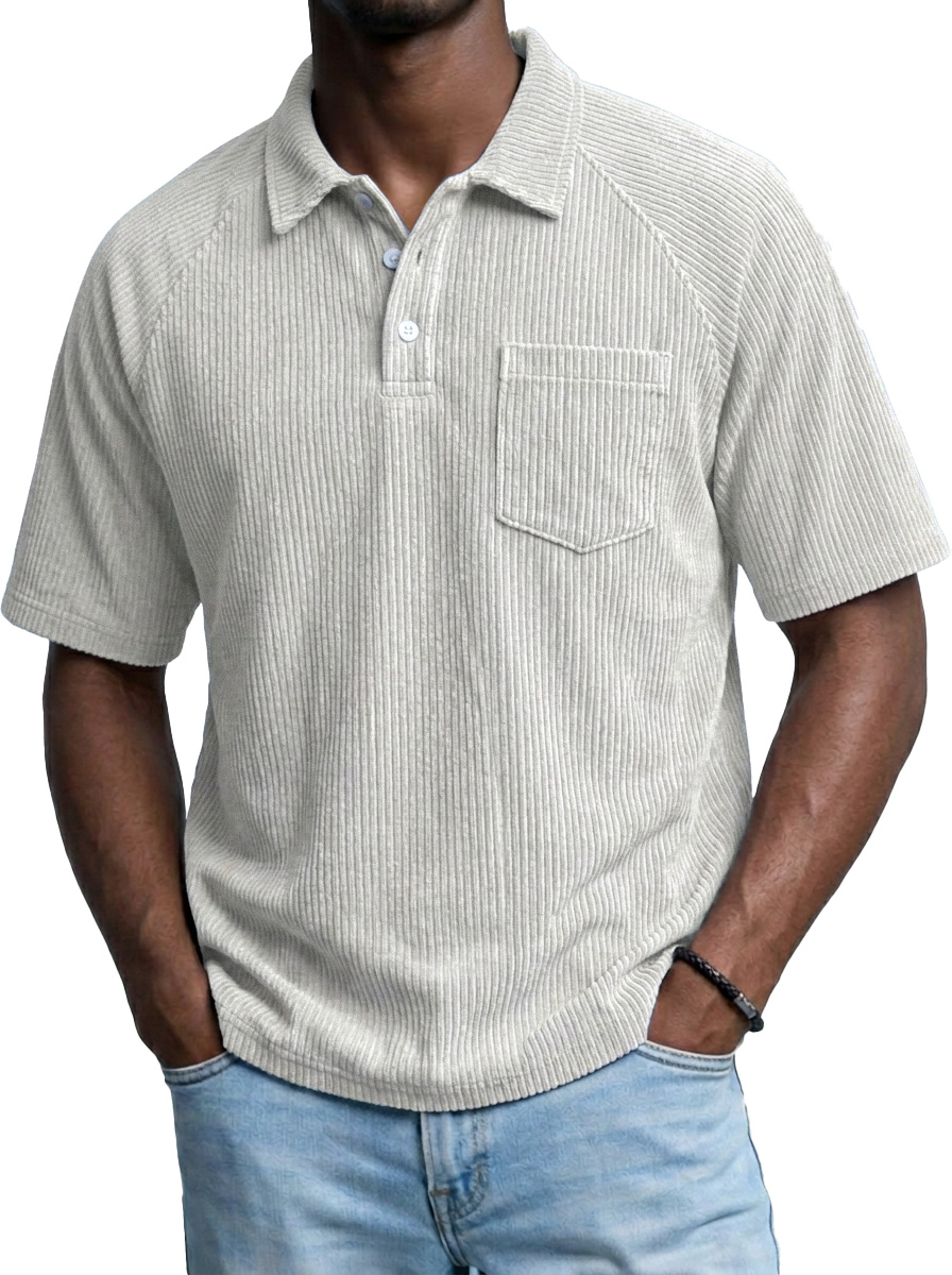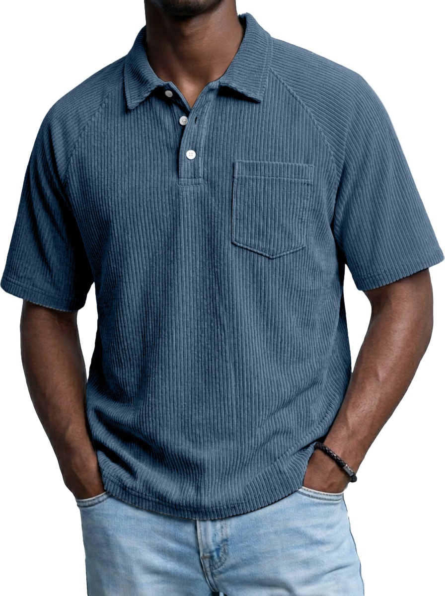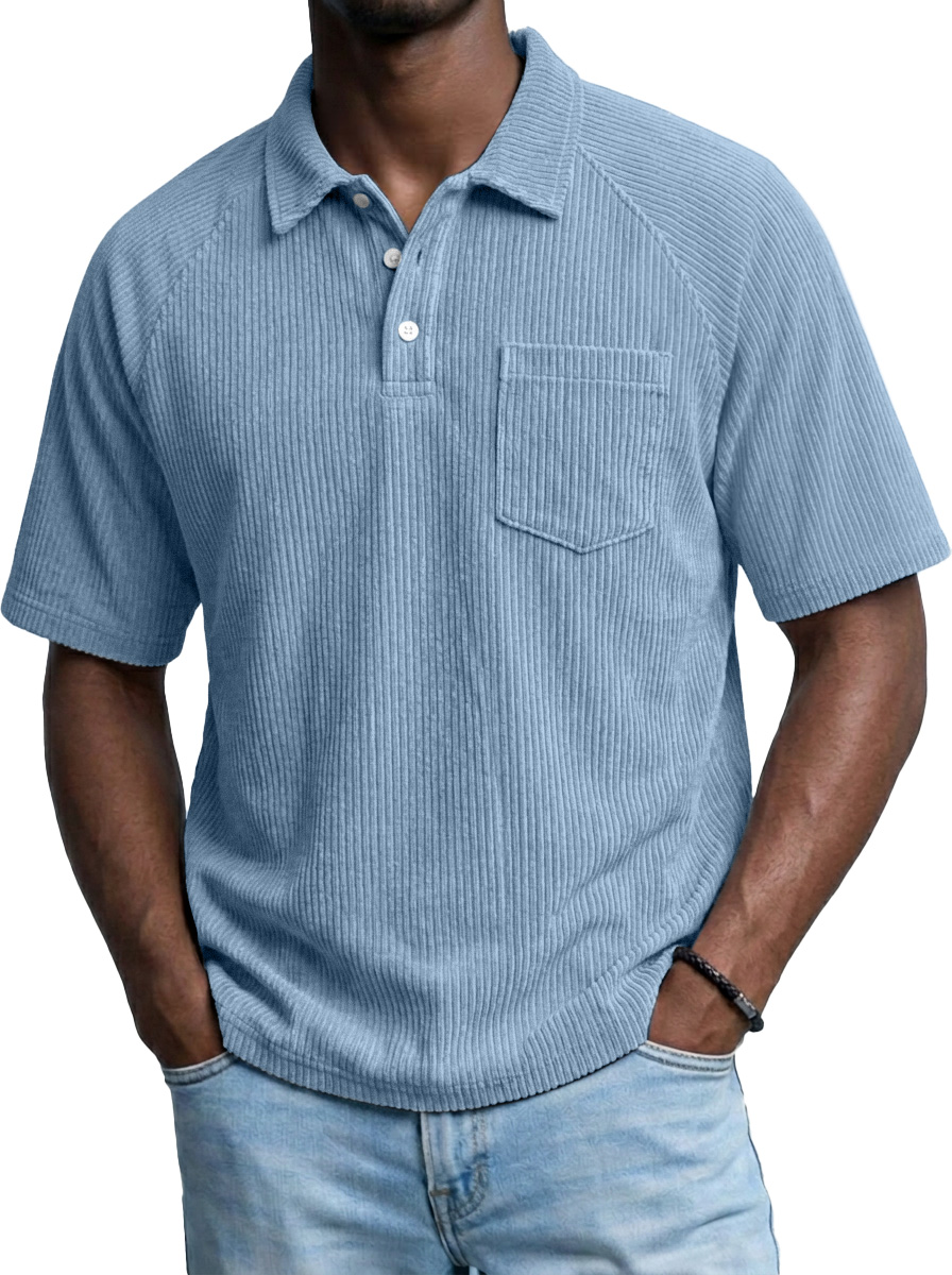 Retro-Cord-Polohemd für Herren mit Raglanärmeln und kurzen Ärmeln