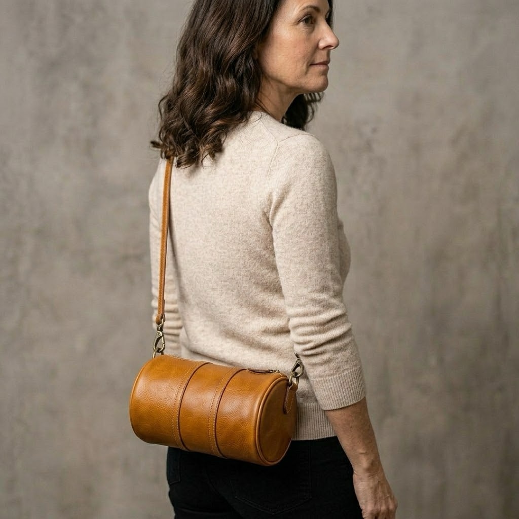 Zylindrische Damenhandtasche aus echtem Leder WLB03